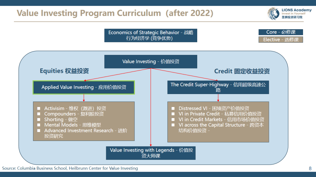 As beneficiaries of Columbia’s educational resources, we at LIONS aim to build a world-class program that contributes to the advancement of value-investing practices in China. In doing so, we not only seek to pass on knowledge and experience to practitioners eager to grow as fundamental-focused investors but also strive to establish LIONS Academy as a platform to foster two-way dialogues/learnings among investors in the East and the West in an increasingly divided world. After all, learning in Value Investing knows no borders.