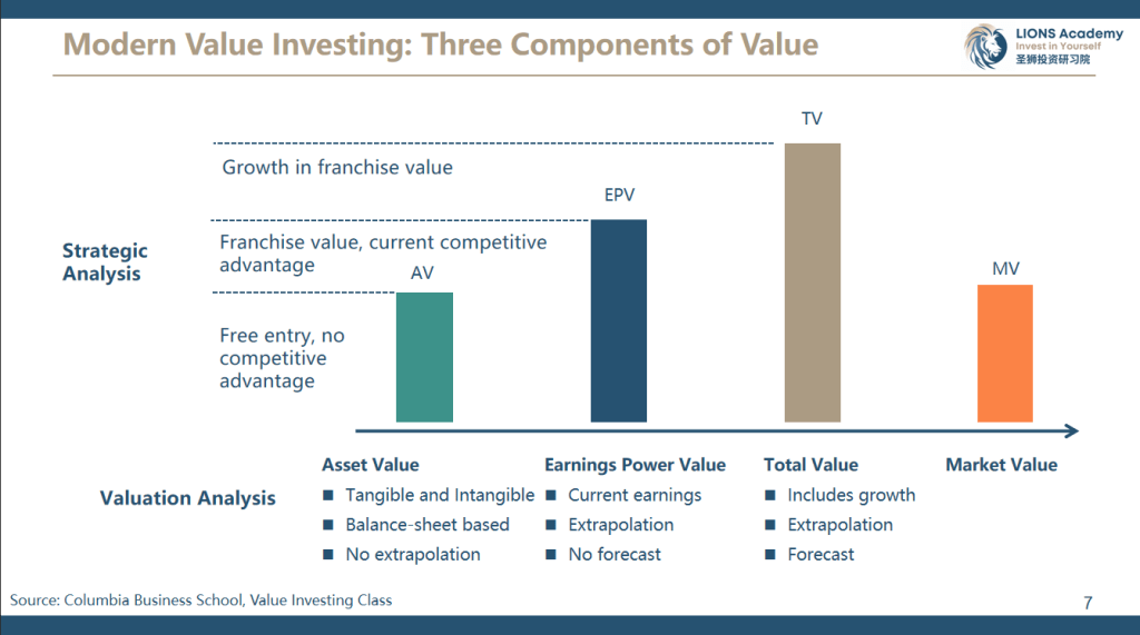 Today, the world has shifted from an industrial economy to a digital/knowledge economy. Traditional accounting standards have not evolved to properly account for tech companies dominated by intangible assets. For tech companies, R&D investments, loyal customer bases, and scarce human talent (such as AI scientists and engineers) can be just as valuable as physical assets for brick-and-mortar companies. In this context, Columbia’s modern value investing approach has refined traditional methodologies to include the value of intangible assets, advancing the discipline to the 3.0 era.